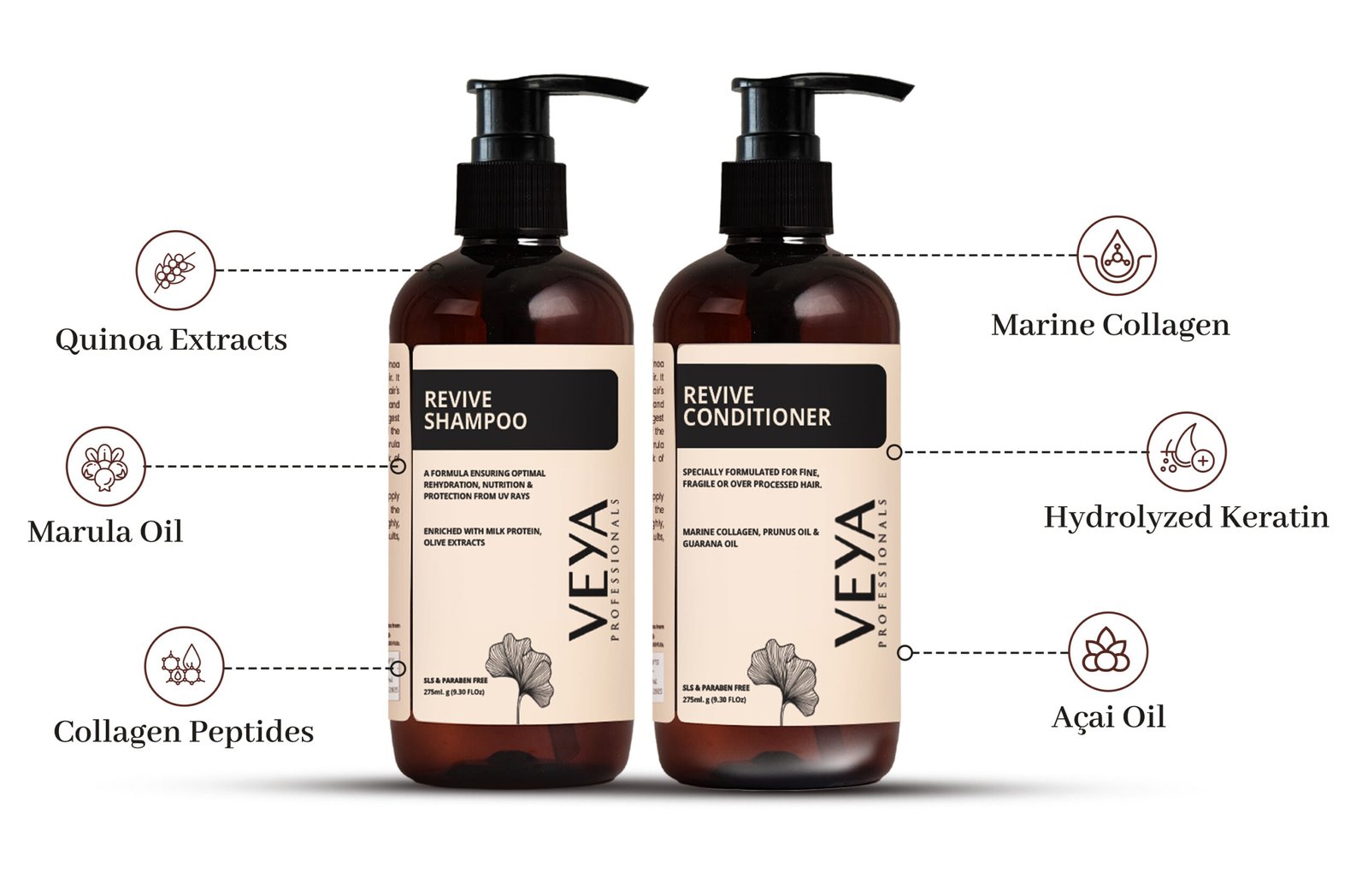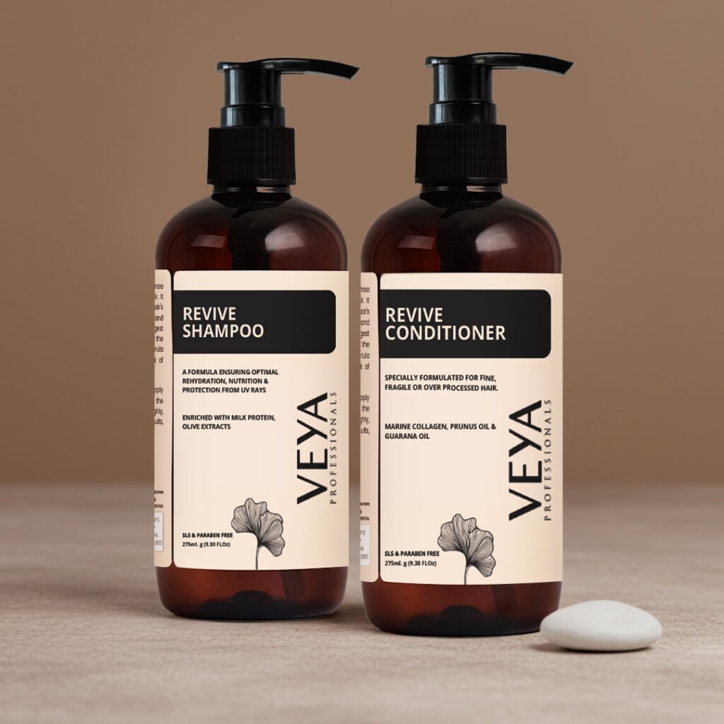 The Revive Shampoo & Conditioner work in synergy to rebuild strength, restore elasticity, and smooth rough, stressed strands—without heaviness.