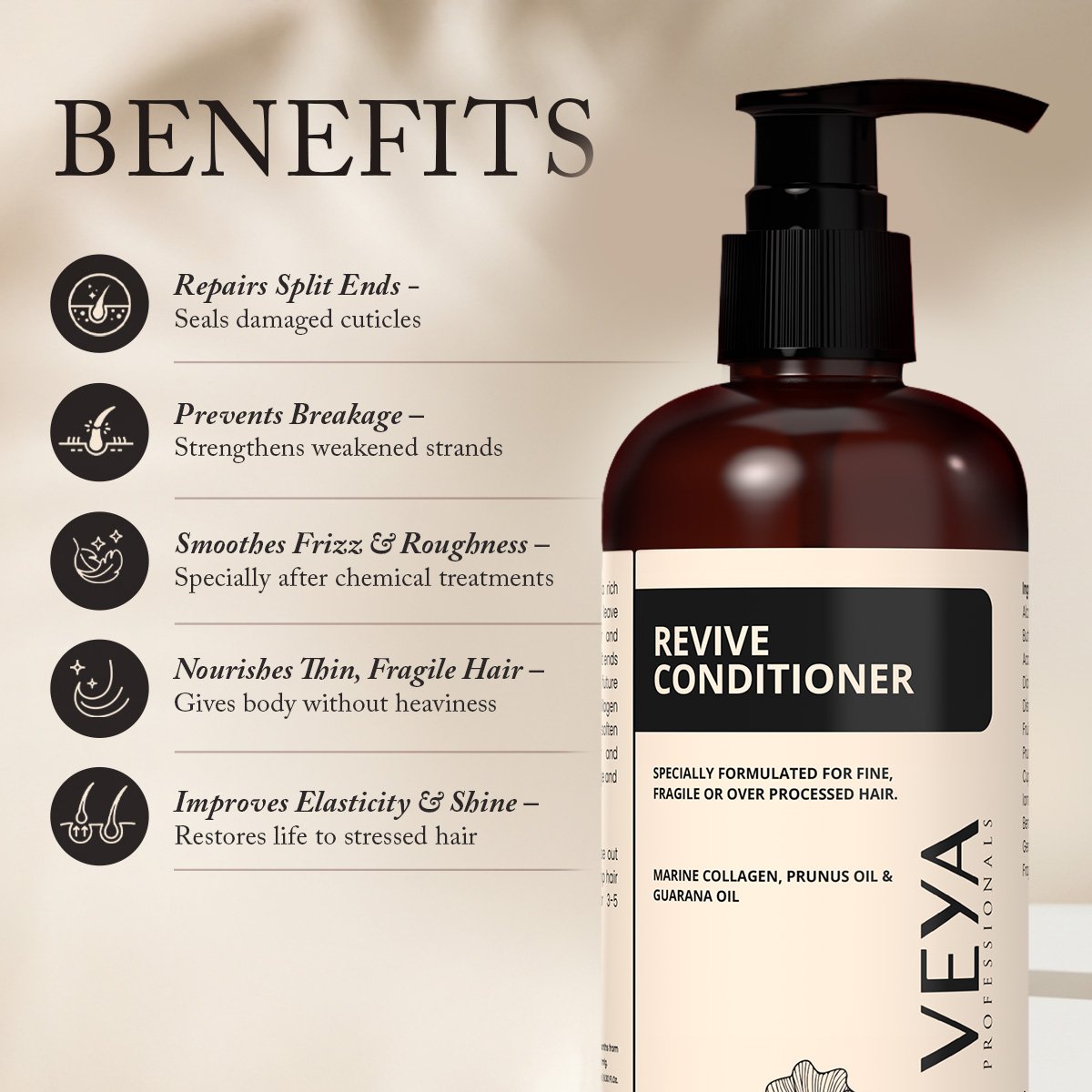 Revive Conditioner is a rich, restorative blend designed for fine, fragile, or chemically stressed hair. Powered by Marine Collagen, Prunus Oil, Guarana Oil, Açai Oil, and Hydrolyzed Keratin, it deeply nourishes and seals damaged hair cuticles. It reduces breakage, boosts softness, and brings back resilience.