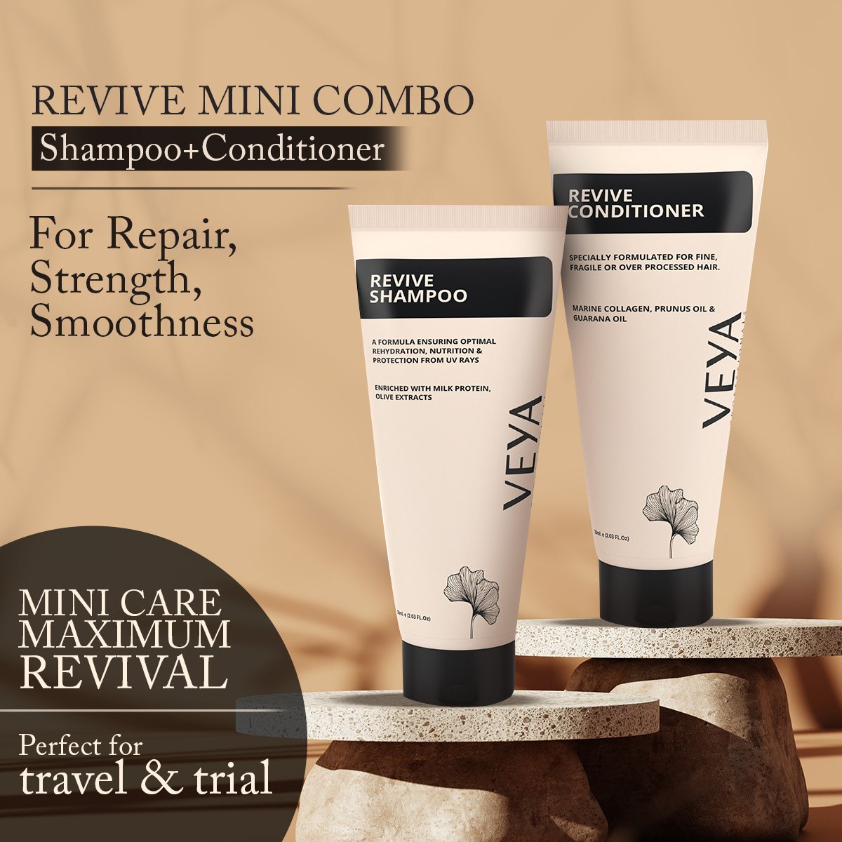The Revive Repair Combo is designed for hair that feels weak, breaks easily, or looks damaged due to colouring, heat styling, or chemical treatments.