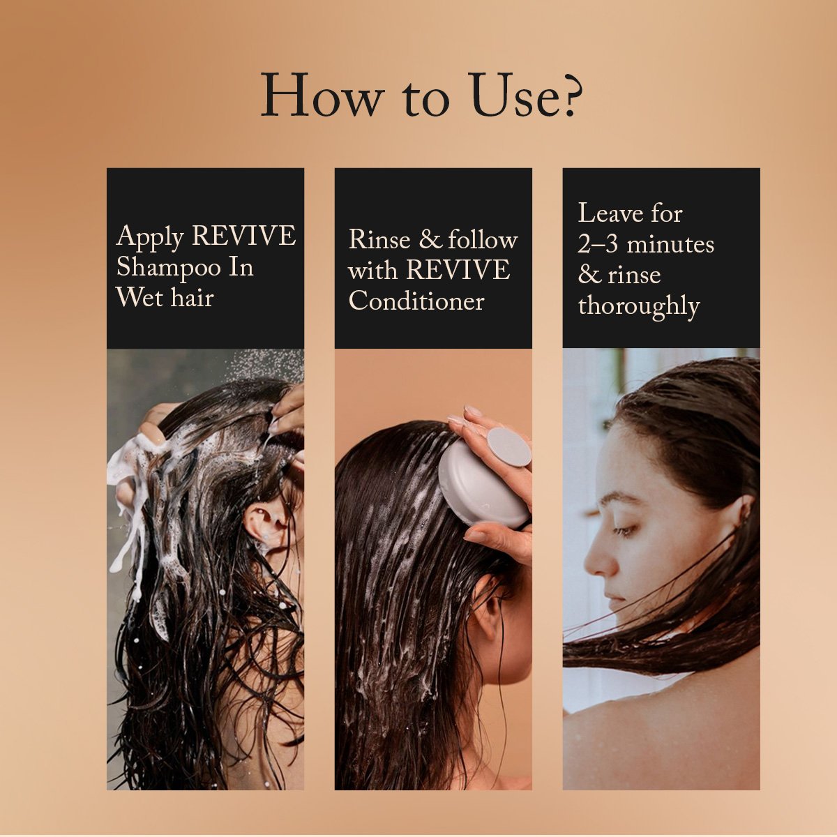 The Revive Conditioner works on the lengths and ends to smooth rough hair, seal damaged areas, and protect against further breakage. It helps improve softness, manageability, and overall hair texture without making hair heavy.